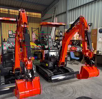 Nous proposons des mini pelles et accessoires neufs, avec options sur mesure disponibles.